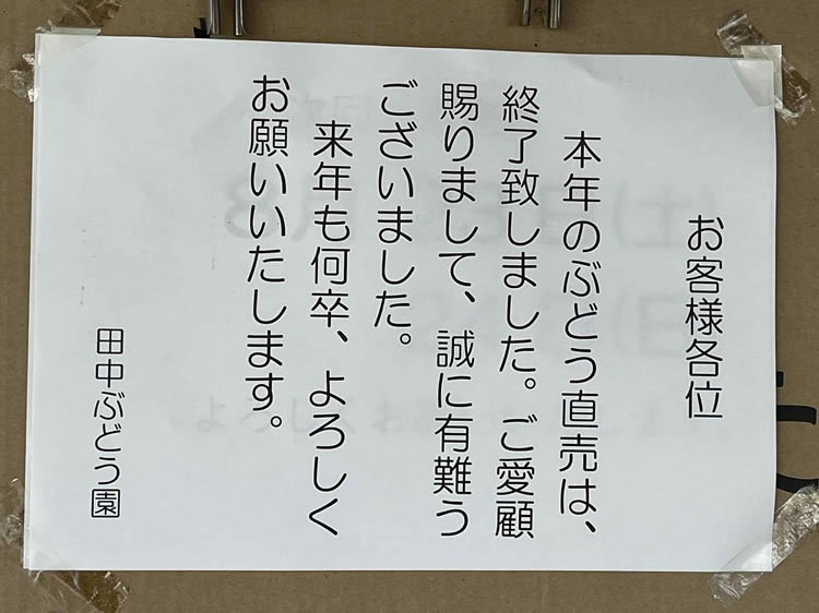 田中ぶどう園の今年の直売所は、本日で終了となりました。