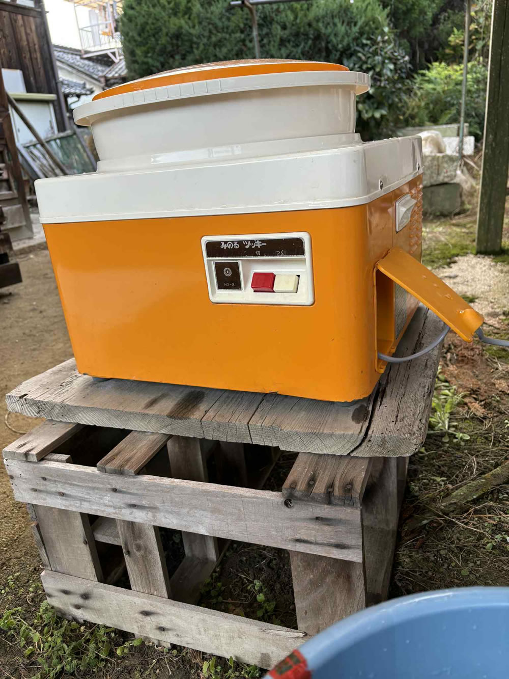 - 長持ちしてる餅つきマシーンと手作り感満載の台